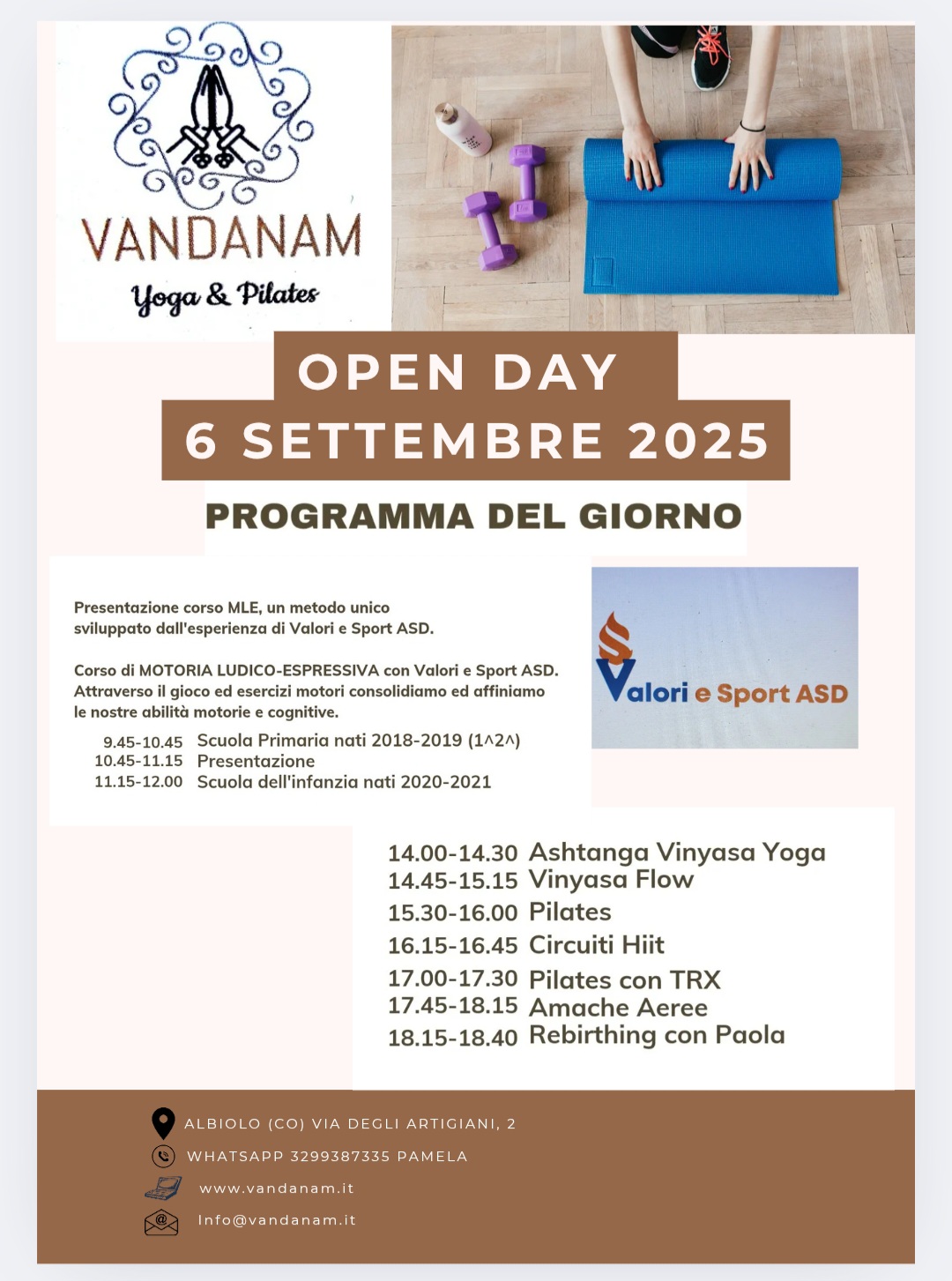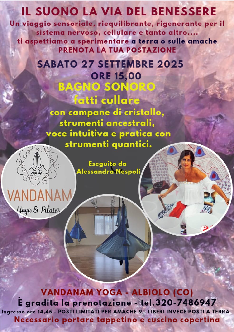 Vieni a scoprire il benessere di queste discipline! Il 7 settembre 2024.Partecipa all'inaugurazione e open day gratuito. Prenota il tuo posto su WhatsApp 3299387335 o email: info@vandanam.it