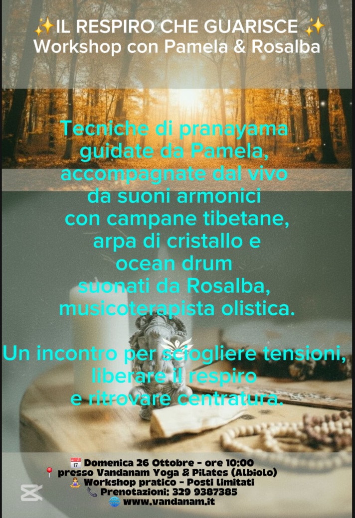 Un viaggio pratico con tecniche di pranayama e suoni dal vivo di campane tibetane, arpa di cristallo e ocean drum, guidati da Rosalba, musicoterapista olistica.