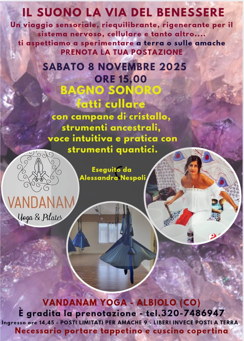 Il 30 novembre lasciati avvolgere dai suoni delle campane di cristallo, coccolato/a dall'amaca. Un'esperienza unica di rilassamento e rigenerazione.